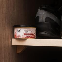 K2 Dalia to estetyczny wygląd i bezpieczeństwo, bez ryzyka rozlania się zapachu. Doskonale nadaje się do umieszczenia w aucie (np. w uchwycie na kubek) lub w domu. Wypełni atrakcyjnym aromatem garderobę, szafę, łazienkę czy toaletę.