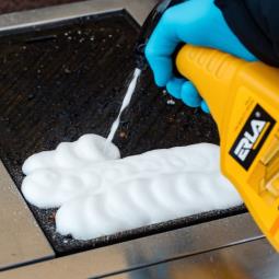 ERLA GRILLEX to profesjonalny, gotowy do użycia środek do czyszczenia grilli, piekarników, rusztów, patelni, garnków, komór wędzarniczych, a także szyb kominkowych. Skutecznie usuwa przypalony tłuszcz, zapieczone resztki potraw oraz zabrudzenia wynikające z zadymienia. Dzięki aktywnej pianie penetruje zabrudzenia, skutecznie je rozpuszcza i pozwala na ich usunięcie bez potrzeby szorowania.