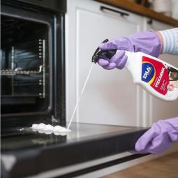 Silny i skuteczny płyn do czyszczenia piekarnika został stworzony, aby błyskawicznie usuwać nawet najbardziej uporczywe zabrudzenia: przypalone resztki jedzenia, tłuste osady i zapieczenia, na które „nic nie działa”.