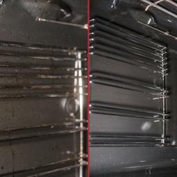 Aktywna piana dokładnie pokrywa zabrudzone miejsca, docierając nawet do trudno dostępnych zakamarków. Po chwili piana zmienia kolor na brązowy - to sygnał, że preparat intensywnie pracuje, rozpuszczając przypalenia i tłuszcz bez potrzeby szorowania. Efekt to powierzchnia idealnie czysta i bez smug i zarysowań.