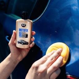 Mleczko nabłyszczające do lakieru. Delikatne mleczko nabłyszczające do lakieru K2 Motofix to najwyższej jakości formuła ochronna zawarta w wysokiej jakości mieszance wosków syntetycznych. Dzięki swojej konsystencji jest ono bardzo łatwe w aplikacji. Jedna butelka 250 ml wystarczy na kilka pokryć całego auta.