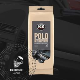 Chusteczki do deski rozdzielczej K2 POLO MATT WIPES posiadają unikalny, atrakcyjny, energetyczny zapach ENERGY SHOT, który pobudza do działania i dodatkowo wzmacnia przyjemność ich używania.