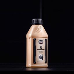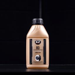 K2 R3 to w pełni syntetyczny najwyższej jakości płyn hamulcowy o temperaturze wrzenia pow. 240 st. C. Płyn hamulcowy R3 stosowany jest w samochodowych układach hamulcowych. Jest przeznaczony do wymiany i uzupełnienia płynu we wszystkich pojazdach, gdzie instrukcja obsługi nakazuje stosowanie płynu R3 lub DOT3.