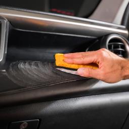 Idealny do czyszczenia plastików, gumy i skóry we wnętrzu samochodu. Dzięki kompaktowemu rozmiarowi 13 × 8 cm bez problemu dociera do trudno dostępnych miejsc.