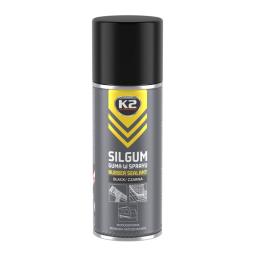 Uszczelniacz w sprayu K2 posiada doskonałą przyczepność do powierzchni m.in. metalowych, ocynkowanych, aluminiowych, drewnianych, betonowych, PVC, bitumicznych, materiałów dachowych i asfaltu, ceramiki, włókna szklanego. K2 Silgum idealnie nadaje się do napraw dachów, rynien, przepustów itp. Może być stosowany jako uszczelniacz dekarski.