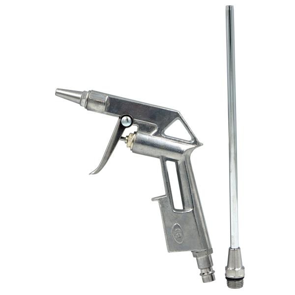 Pistolet do przedmuchiwania z długą dyszą. Niezbędny do usuwania pyłów, piasku, wiórów, itp. rzy użyciu sprężonego powietrza.
