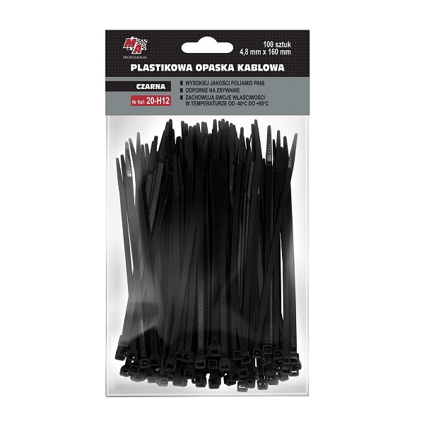 MA PRO plastikowa opaska kablowa - czarna 4,8mm x 160 100szt