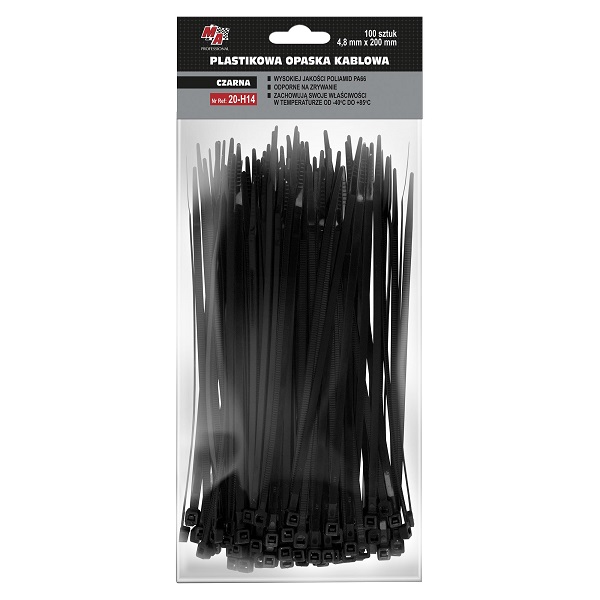 MA PRO plastikowa opaska kablowa - czarna 4,8mm x 200 100szt
