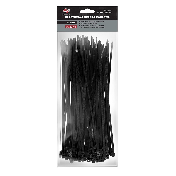 MA PRO plastikowa opaska kablowa - czarna 4,8mm x 250 100szt