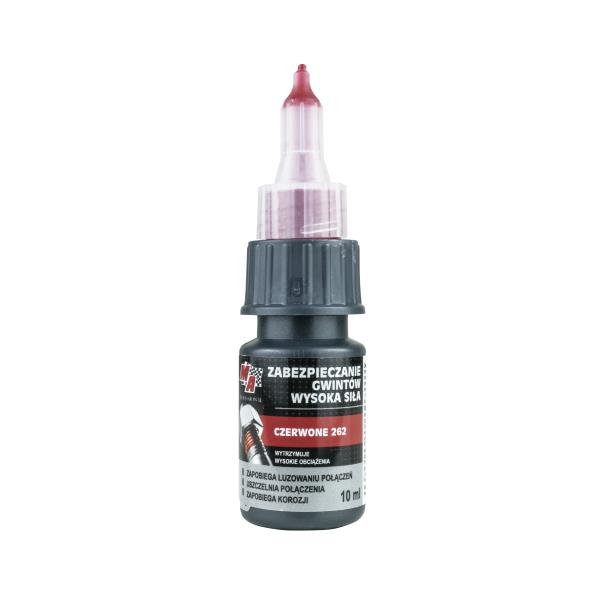Perparat charakteryzujący się mocną siłą (czerwony) do profesjonalnego zabezpieczenia gwintów przed wystąpieniem możliwości poluzowania.