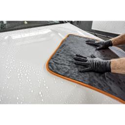 Rewolucyjna mikrofibra wykonana z wyjątkowego splotu włóknatypu TWISTED PILE. Puszysta strona służy do osuszania lakieru, gładkastrona idealnie sprawdzi się przy czyszczeniu szyb czy wnętrza. Skręconewłosie charakteryzuje się doskonałym absorbowaniem wody orazszybkim osuszaniem się samych mikrowłókien. Dlatego sam procesosuszania jest szybszy w porównaniu do standardowych mikrofibr.Delikatne i wysokiej jakości włókna nie pozostawiają zarysowań i sąbezpieczne dla każdego rodzaju lakieru. Delikatne obszycie zwiększażywotność mikrofibry, ale także nie powoduje dodatkowych rys. Dziękiodpowiedniej długości włóknom mikrofibra z lekkością przesuwa siępo lakierze. Zaleca się pranie mikrofibry w temperaturze do 40°C bezużycia płynów zmiękczających i wybielaczy. Nie suszyć na grzejnikachi nie prasować. Suszyć w trybie delikatnym.