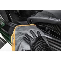 Rewolucyjna mikrofibra wykonana z wyjątkowego splotu włókna typuTWISTED PILE. Puszysta strona służy do osuszania lakieru, gładka strona idealnie sprawdzisię przy czyszczeniu szyb czy wnętrza. Skręcone włosie charakteryzuje się doskonałymabsorbowaniem wody oraz szybkim osuszaniem się samych mikrowłókien. Dlatego samproces osuszania jest szybszy w porównaniu do standardowych mikrofibr. Delikatnei wysokiej jakości włókna nie pozostawiają zarysowań i są bezpieczne dla każdego rodzajulakieru. Delikatne obszycie zwiększa żywotność mikrofibry, ale także nie powoduje dodatkowychrys. Dzięki odpowiedniej długości włóknom mikrofibra z lekkością przesuwa się polakierze. Zaleca się pranie mikrofibry w temperaturze do 40°C bez użycia płynów zmiękczającychi wybielaczy. Nie suszyć na grzejnikach i nie prasować. Suszyć w trybie delikatnym.
