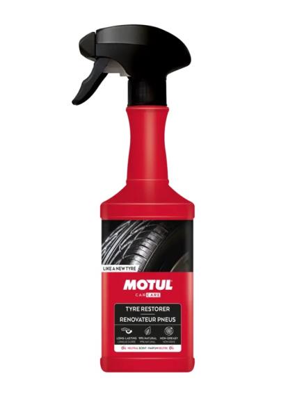 MOTUL® Tyre Restorer to środek do renowacji opon w żelu do wszystkich typów opon. Oparty na formule w 99% pochodzenia naturalnego, przywraca wyblakłym oponom długotrwały, głęboki czarny naturalny kolor. Często stosowane MOTUL® Tyre Restorer zabezpieczy ściany boczne opon przed pękaniem, brązowieniem i promieniami UV.