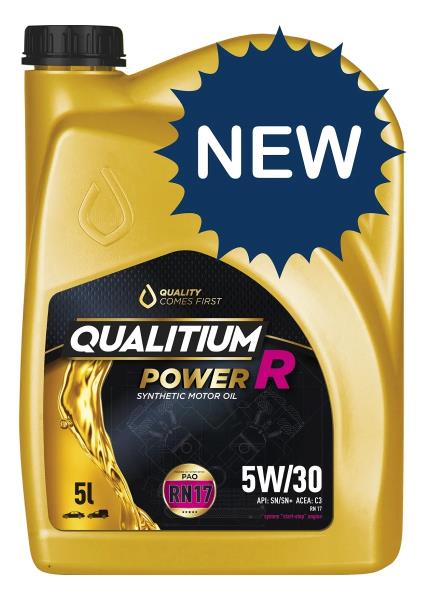 Qualitium Power R 5W30 nowej generacji niskopopiołowy syntetyczny olej silnikowy klasy Premium z normami Renault RN17 i ACEA:C3 do współczesnych samochodów spełniających najbardziej rygorystyczne wymagania odnośnie emisji spalin.