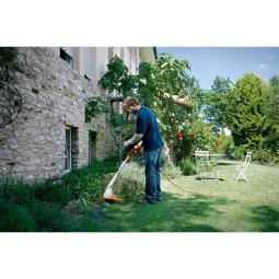 Lekka i bardzo poręczna kosa elektryczna z regulowanym uchwytem pałąkowym i regulacją długości wysięgnika. Doskonała do wyrównywania krawędzi trawnika i prac wykończeniowych wokół drzew, ścieżek i schodów w prywatnym ogrodzie.