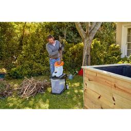 Kompaktowy rozdrabniacz elektryczny z mocnym silnikiem elektrycznym do okazyjnego rozdrabniania gałęzi o średniej grubości. Z otworem zasypowym w kształcie koniczyny, zintegrowanym pojemnikiem na zrębki i cichym, wolnobieżnym wałem. Bardzo kompaktowe wymiary i możliwość składania ułatwiają transport.