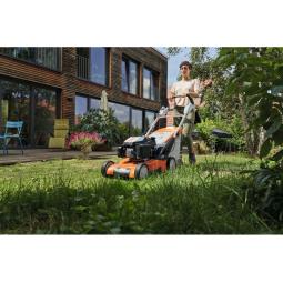 Kosiarka spalinowa STIHL RM 545 VM z napędem Vario, posiadająca funkcję mulczowania. Idealnie nadaje się do trawników średniej wielkości. Duży, 60 litrowy kosz ze zintegrowanym znacznikiem zapełnienia gwarantuje długi okres pracy bez potrzeby opróżniania kosza. Centralna 7-stopniowa regulacja wysokości koszenia umożliwia równomierne przycięcie trawy na żądaną wysokość w zakresie od 25 do 80 mm. Składany komfortowy uchwyt optymalizujący transport i przechowywanie urządzenia