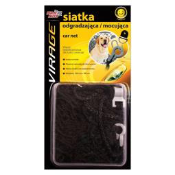 Siatka odgradzająca Moje Auto Virage przeznaczona jest do montażu w samochodzie między tylnymi siedzeniami a bagażnikiem. Ma wymiary 100 x 100 cm i jest wykonana z trwałych i odpornych na uszkodzenia mechaniczne materiałów. Ma gładką powierzchnię i nie zagraża bezpieczeństwu zwierzaka. Wyposażona jest w solidne haki mocujące, które ułatwiają montaż – jest naprawdę błyskawiczny. Dostępna jest w uniwersalnym, czarnym kolorze, pasuje zatem do każdego wnętrza pojazdu.